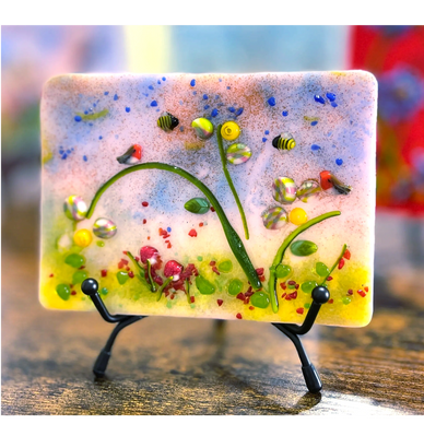 More than just jewelry! I have one of a kind fused glass pieces including suncatchers, glass tiles, ornaments and trinket dishes...and watercolor cards.
